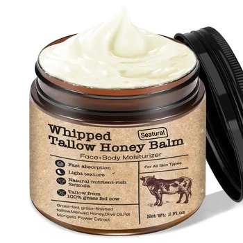 Beef Tallow Balm for Skin Organic Grass Fed Beef Tallow Balm with Raw Honey & Jojoba Oil Hydrated Skin